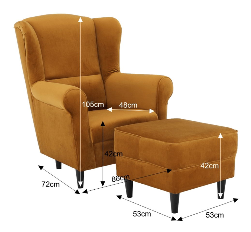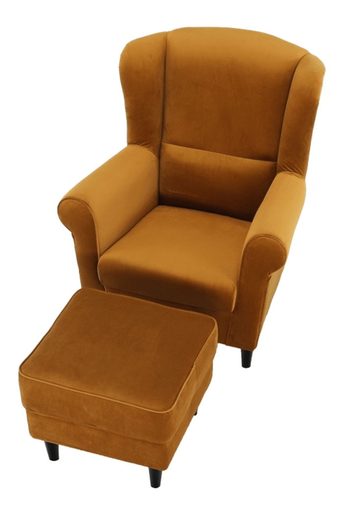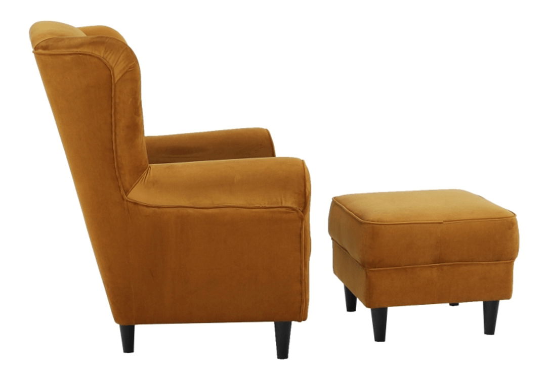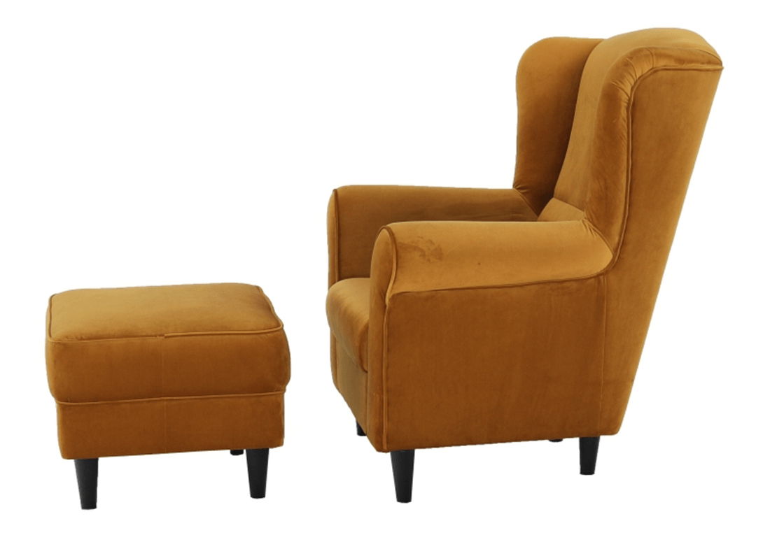 Křeslo ušák s taburetem Aevo (hořčicová)