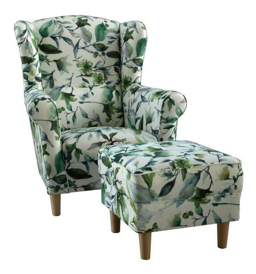 Křeslo ušák s taburetkou Aevo (listy) je elegantně a pohodlné sedátko, které zkrášlí každou místnost. Svou výškou 105 cm a hloubkou sedu 72 cm poskytuje maximální komfort a relaxaci. Vzor listí na textilii dodává sedadlu jedinečný vzhled, který okouzlí každého. Křeslo má dřevěné nožičky v barevném provedení buk, které zajišťují stabilitu a pevnost. Oděruodolnost textilie byla testována na 85 000 oděrů podle testu Martindale, což zaručuje její dlouhou životnost a trvanlivost. Rozměry křesla jsou 86x72x105 cm a taburetu 53x53x42 cm. Výška sedu je 42 cm a hloubka sedu je 48 cm. Spodní prostor od podlahy je ve výšce 13 cm. Křeslo dokáže unést až 120 kg a taburet až 90 kg. Křeslo ušák s taburetkou Aevo je dokonalou volbou pro ty, kteří hledají pohodlí a styl v jednom produktu.