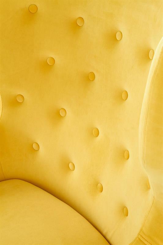 Křeslo ušák Tais ve žluté barvě je ideální pro ty, kteří hledají pohodlné a stylové křeslo pro svůj domov. S výškou 103 cm a hloubkou 83 cm poskytuje dostatek prostoru pro relaxaci a odpočinek. Křeslo je vyrobeno z kvalitních materiálů, včetně sametové látky a masivního dřeva, což zaručuje trvanlivost a komfort. Výška sezení 50 cm zajišťuje správnou polohu těla a pohodlí při sezení. Křeslo ušák Tais je dokonalým doplňkem pro váš obývací prostor nebo ložnici a jistě přinese do vašeho domova stylový nádech.