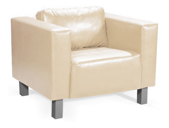 Křeslo Valiano I (béžová) o výšce 77 cm a hloubce 75 cm je zajímavým nábytkem v lesklém provedení ekokůže. Tento kus nábytku má měkkou ekokůži a velký polštář, které zajišťují pohodlné sezení. Křeslo má masivní konstrukci, kterou doplňují 15 cm dřevěné nožičky v šedé barvě. Tento kousek nábytku je vyroben z pevných materiálů, které se snadno udržují. Výplň křesla je z polyuretanové pěny a pružin Faliste. Výška sezení je 41 cm, hloubka sezení s polštářem je 55 cm a bez polštářů je 68 cm. Nožičky jsou dřevěné, šedé barvy a mají výšku 15 cm. Křeslo má jeden polštář a nelze jej rozkládat. Křeslo Valiano I je baleno v jednom balíku o velikosti 48x75x92 cm a váží 19 kg. Ekokůže MG, ze které je křeslo vyrobeno, je vynikající kvality a má gramáž 620g/m +/-60%. Tkanina je odolná vůči oděru a nečistotám.