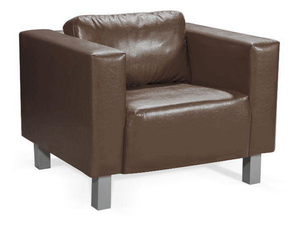 Křeslo Valiano I (hnědá) o výšce 77 cm a hloubce 75 cm je zajímavým kusem nábytku v lesklém provedení ekokůže, který zaujme již na první pohled. Jeho masivní konstrukce je doplněna dřevěnými nožičkami v šedé barvě, které jej provzdušňují. Křeslo nabízí pohodlné sezení díky měkké ekokůži a velkému polštáři. Použité materiály jsou pevné, odolné a snadno se udržují. Výška sezení je 41 cm a hloubka sezení s polštářem je 55 cm. Křeslo má jednu polštářovou výplň a nenabízí možnost rozkladu ani úložného prostoru. Lesklá tkanina MG, ze které je křeslo vyrobeno, je ekokůže vynikající kvality a velmi odolná vůči oděru a nečistotám. Křeslo Valiano I je dodáváno v jednom balíku s rozmoři 48x75x92 cm a váhou 19 kg.