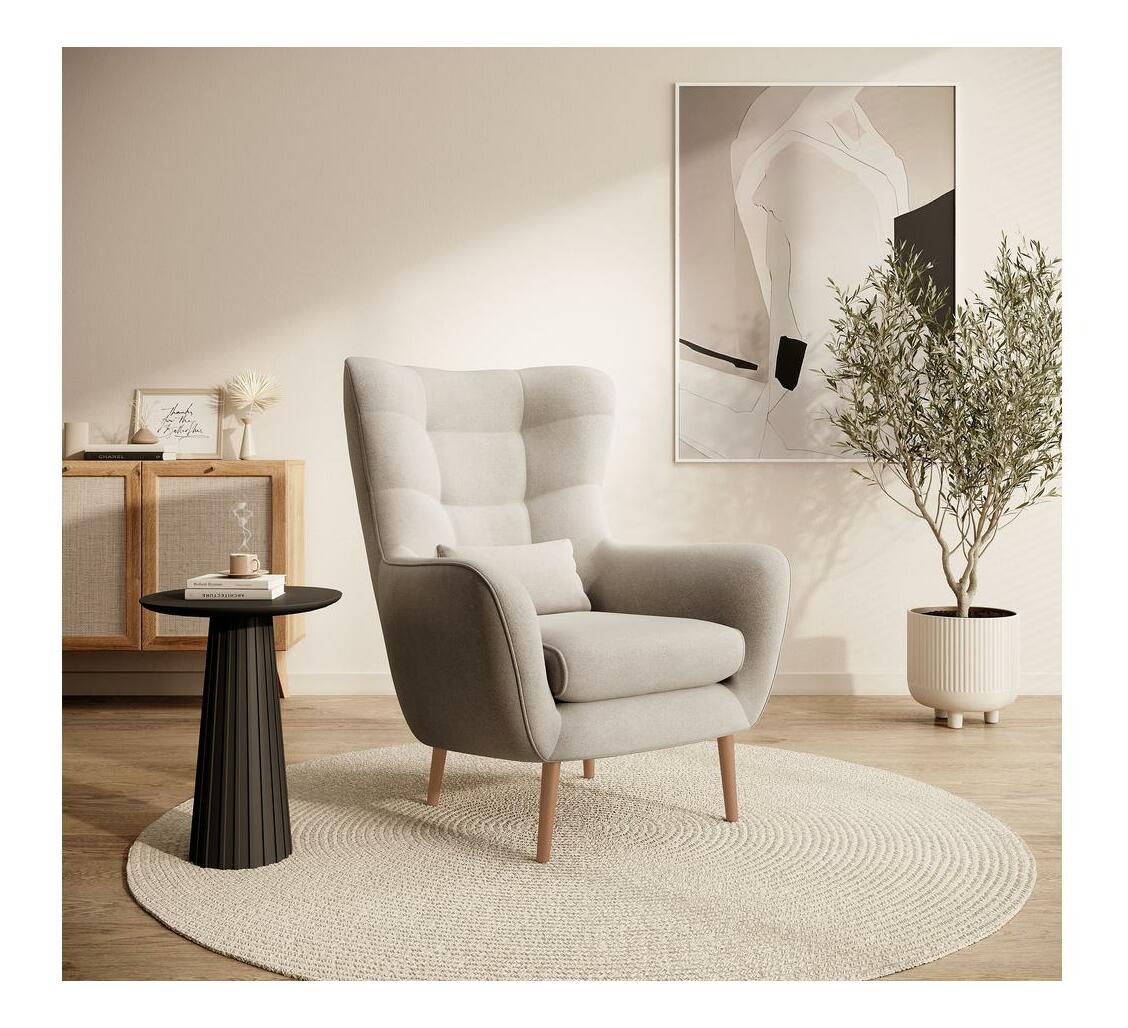 ZobrazitHledáte pohodlný nábytek do obývacího pokoje, kde si odpočinete po náročném dni? Vyberte si ušák ! se vyznačuje vysokým opěradlem s charakteristickými ušima obepínajícími tělo a pohodlnými područkami, které vám umožní ponořit se do jeho srdce s vaší oblíbenou knihou nebo šálkem horkého čaje. Elegantní prošívání dodává celku šarm a dřevěné nožičky poskytují stabilní oporu. Módní tvar a přírodní barvy zapadnou do každého aranžmá, od skandinávského až po moderní styl. Detaily produktu: tloušťka pěny v zádové opěrce: 6 cm, tloušťka pěny v sedáku: 13 cm, výška opěradla: 70 cm, pohodlné područky, stylové prošívání na opěradle, dřevěné nohy v barvě světlého dřeva, nábytek čalouněný látkou Castel 03 v r. světle béžová Castel je měkká, hladká tkanina vyznačující se vysokou odolností proti tření, oděru a žmolkování, díky čemuž je ideální pro každodenní nábytek. Další výhodou je Easy Clean Technology – materiál se snadno čistí, což umožňuje snadné odstranění nečistot s trochou vody a měkkým hadříkem.