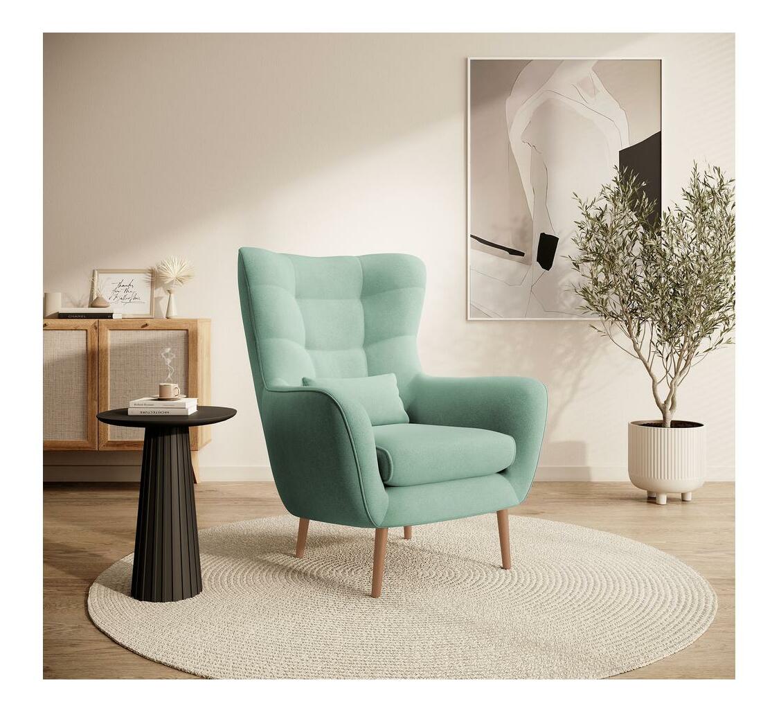 ZobrazitHledáte pohodlný nábytek do obývacího pokoje, kde si odpočinete po náročném dni? Vyberte si křeslo oušek se vyznačuje vysokým opěradlem s charakteristickými ušima obklopujícími tělo a pohodlnými područkami, které vám umožní ponořit se do jeho srdce s vaší oblíbenou knihou nebo šálkem horkého čaje. Elegantní prošívání dodává celku šarm a dřevěné nohy poskytují stabilní oporu. Módní tvar a přírodní barvy zapadnou do každého aranžmá, od skandinávského až po moderní styl Detaily produktu: tloušťka pěny v opěradle: 6 cm, tloušťka pěny v sedáku: 13 cm, výška opěradla: 70 cm, pohodlné područky, stylové prošívání. na podnoži dřevěné nohy v barvě světlého dřeva, nábytek čalouněný látkou, Castel 34 v mintové barvě Castel je měkká, hladká látka vyznačující se vysokou odolností proti tření, oděru a žmolkování, díky čemuž je ideální pro každodenní nábytek. Další výhodou je Easy Clean Technology – materiál se snadno čistí, což umožňuje snadné odstranění nečistot s trochou vody a měkkým hadříkem.
