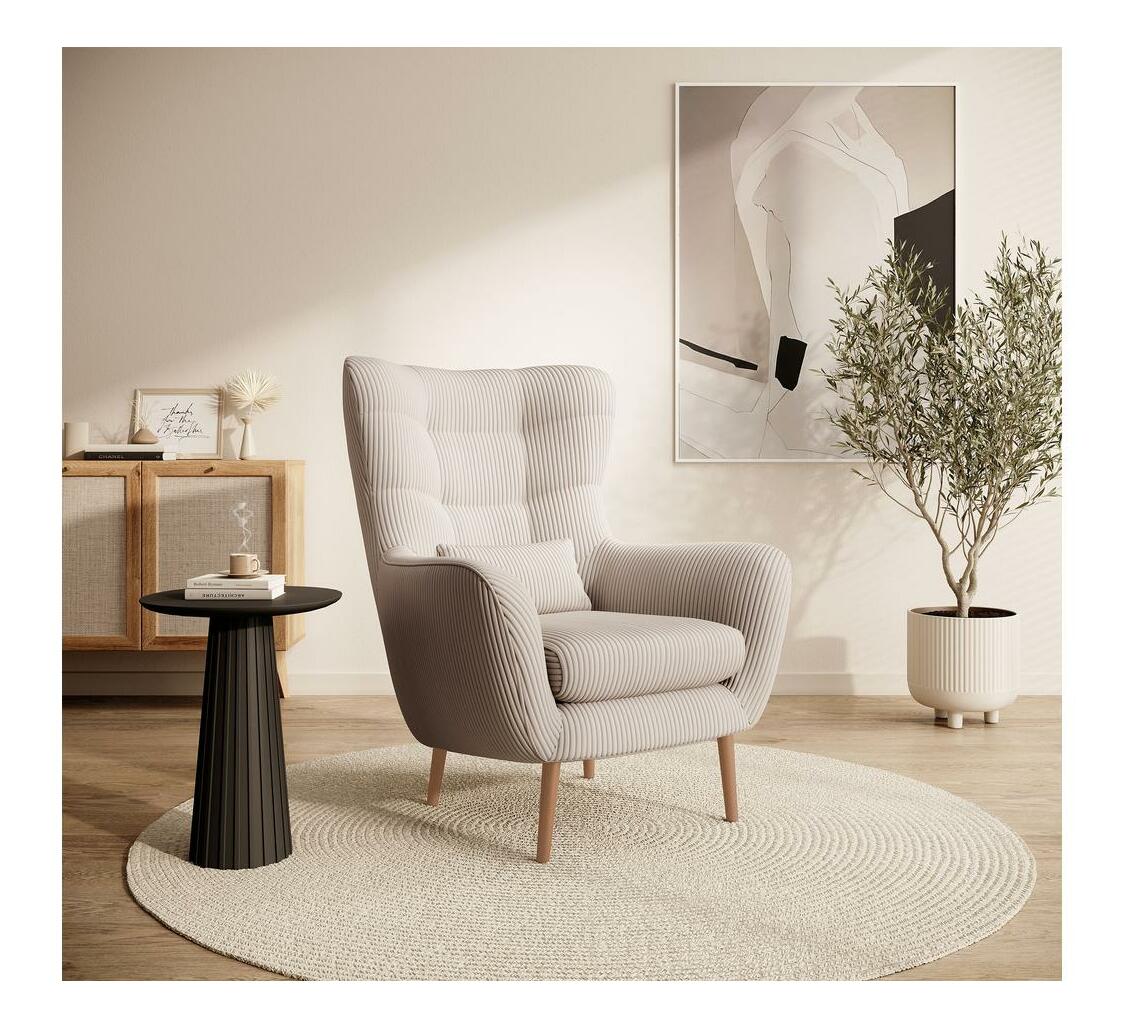 ZobrazitHledáte pohodlný nábytek do obývacího pokoje, kde si odpočinete po náročném dni? Vyberte si křeslo oušek se vyznačuje vysokým opěradlem s charakteristickými ušima obklopujícími tělo a pohodlnými područkami, které vám umožní ponořit se do jeho srdce s vaší oblíbenou knihou nebo šálkem horkého čaje. Elegantní prošívání dodává celku šarm a dřevěné nohy poskytují stabilní oporu. Módní tvar a přírodní barvy zapadnou do každého aranžmá, od skandinávského až po moderní styl Detaily produktu: tloušťka pěny v opěradle: 6 cm, tloušťka pěny v sedáku: 13 cm, výška opěradla: 70 cm, pohodlné područky, stylové prošívání. na podnoži dřevěné nožičky v barvě dřeva světla, nábytek čalouněný látkou, Lincoln 01, krémová barva látka v manšestrm stylu. Povrch pokrytý tlustými pruhy je příjemný na dotek. Vyznačuje se vysokou odolností proti oděru, tření a světlu,