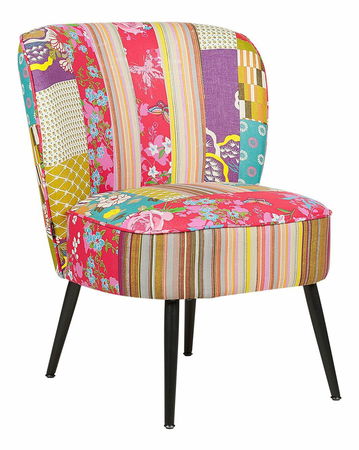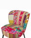 Toto designové křeslo okouzlí každého svým patchworkovým designem a na dotek jemným čalouněním. Křeslo oživí vzhled každého obývacího pokoje nebo ložnice a bude vynikajícím doplňkem dětského pokoje. Černé kovové nohy zajišťují stabilitu, zatímco hustě čalouněné sedátko nabízí pohodlné místo k sezení.