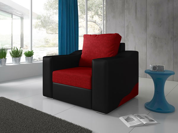 Křeslo Wisteria (červená + černá) o výšce 89 cm a hloubce 83 cm je ideální volbou pro ty, kteří hledají pohodlné a kvalitní křeslo. Toto křeslo je vyrobeno z ekokůže a strukturované látky Sawana a má široké opěrky na ruce pro dokonalý relax. Konstrukce křesla je velmi kvalitní a výplň je z vlnitých vláken potažena rounem. Křeslo má výšku sezení 40 cm a sedátko s polštářem o velikosti 60x50 cm. Nožičky jsou přední chrom a zadní plastové. Tkanina Sawana je lehká, ale odolná s jemnou strukturou a vysokou odolností. Tkanina Mandarin MA je kvalitní imitací pravé kůže, měkká, flexibilní, odolná a barvostálá. Křeslo je složeno z 1 balíku o velikosti 69x109x79 cm a váží 43 kg.