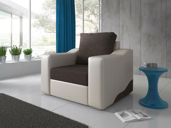 Křeslo Wisteria (hnědá + bílá) o výšce 89 cm a hloubce 83 cm z materiálů Sawana 16 + MA 511 vám přináší pohodlí a klid na vaše oblíbené místo. Křeslo má široké opěrky na ruce a měkký polštář na zip umístěný za zády, které vám dopomohou k dokonalému odpočinku. Konstrukce křesla je vyrobena z kvalitního masivního dřeva, dřevotřísky v tloušťce 16 mm, dřevovláknité desky a překližky. Výplň křesla sestává z polyuretanové pěny 28 kg/m³ - T2844 a vlnitých pružin. Výška sezení křesla je 40 cm, sedák s polštářem má rozměry 60x50 cm a hloubka sezení bez polštářů je 70 cm. Výška křesla po opěrky je 57 cm, výška křesla bez polštáře je 78 cm. Nožičky křesla jsou přední chrom a zadní plast. Tkanina Sawana je jemná tkanina s vysokou odolností, která se skvěle hodí pro čalounění pohovek a postelí. Složení tkaniny je 100% polyester a test oděruvzdornosti Martindale je 45 000 cyklů. Ekokůže Mandarin MA je kvalitní imitace pravé kůže, která je měkká, flexibilní, odolná a barvostálá. Složení tkaniny je 100% polyuretan a test oděruvzdornosti Martindale je 30 000 cyklů. Křeslo Wisteria se dodává v 1 balíku o rozměrech 69x109x79 cm a hmotnosti 43 kg.
