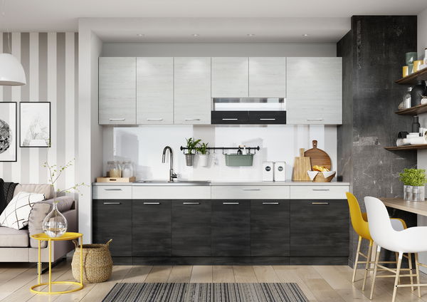 Kuchyňská sestava Barbara se skládá z horních a dolních skříněk Včetně pracovní desky. Vyrobena je z laminovaných desek. Barevné provedení je borovice andersen + borovice norská.