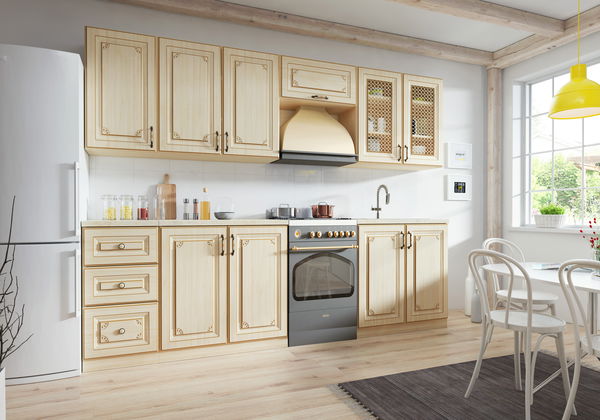 Kuchyně Felicia o délce 260 cm v krémové barvě je ideálním řešením pro ty, kteří hledají praktické a stylové řešení pro svou kuchyni. Kuchyň je vybavena Metaboxem a MDF předními panely, které dodávají kuchyni moderní vzhled. Není součástí sestavy kuchyňský dřez, ale správný dřez by měl mít rozměry 80 cm. Důležité je také zdůraznit, že elektrické spotřebiče nejsou součástí kuchyňské linky. Rozměry skříněk jsou: dolní skříňka pod dřez 82x80x44, 5 cm, dolní skříňka se dvěma dvířky 82x80x44, 5 cm, dolní skříňka se třemi zásuvkami 82x40x44, 5 cm, horní skříňka s dvířky 72x40x28, 5 cm, horní prosklená skříňka se dvěma dvířky 72x80x28,5 cm a horní skříňka na digestoř 36x60x28,5 cm. S touto kuchyní získáte nejen stylový prvek do vašeho domova, ale také funkční a praktické řešení pro přípravu vašich oblíbených jídel.