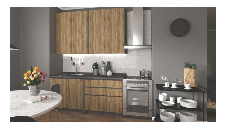 Kuchyně 180 cm Ilea (tmavé dřevo + šedá)