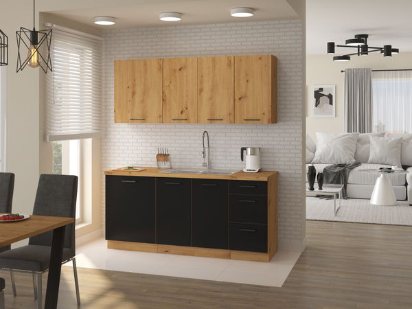 - Kuchyně 180 cm Miraluna (dub artisan + černá matná)