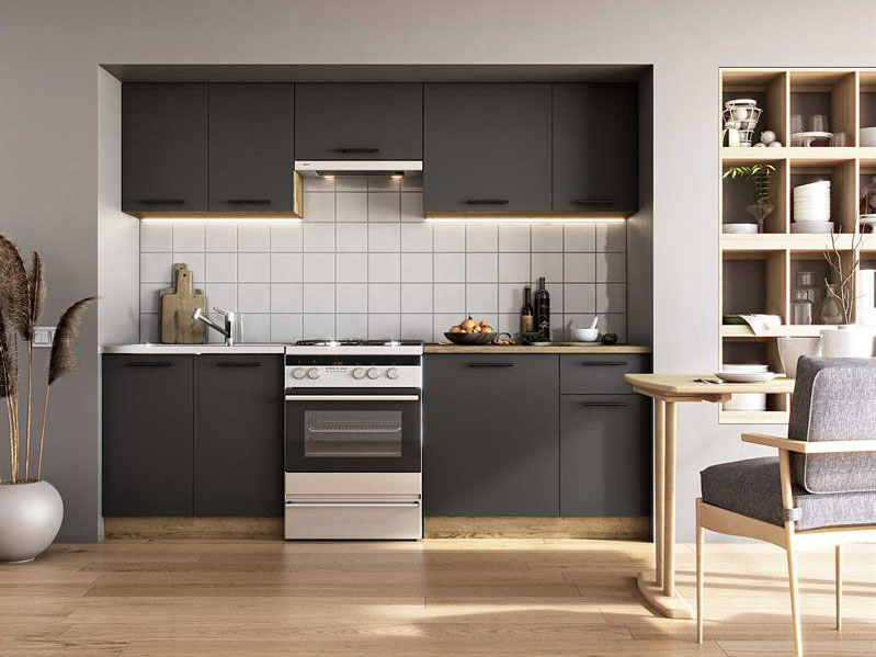 Kuchyně 240 cm Danna (tmavě šedá + přírodní dřevo)