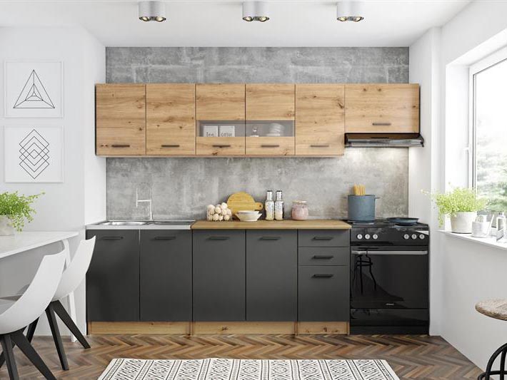 Plynové zvedáky + zásuvky s pojezdy metabox + Pracovní deska (28 mm)
