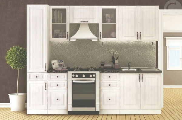 Elegantní a levná kuchyně. Tato kuchyně je navržena tak, že skříňky se dají poskládat v libovolném pořadí. To vám umožní si sestavit kuchyni podle svých představ. Korpus i sokl jsou kvalitního lamina s 3D strukturou bílé barvy, dvířka z MDF s vyfrézovaným vzorem v barvě bílý santál, vše hraněné ABS páskou. Spodní skříňky jsou na polohovatelných nožkách, přední sokl je v ceně, možnost dokoupení bočních soklů. Spotřebiče, dřez a digestoř v ceně nejsou.