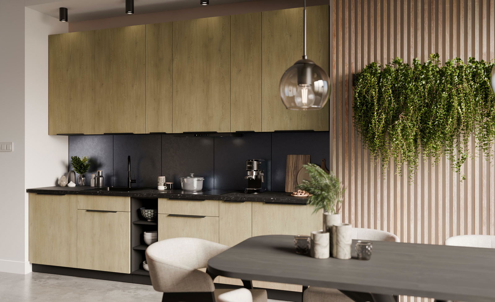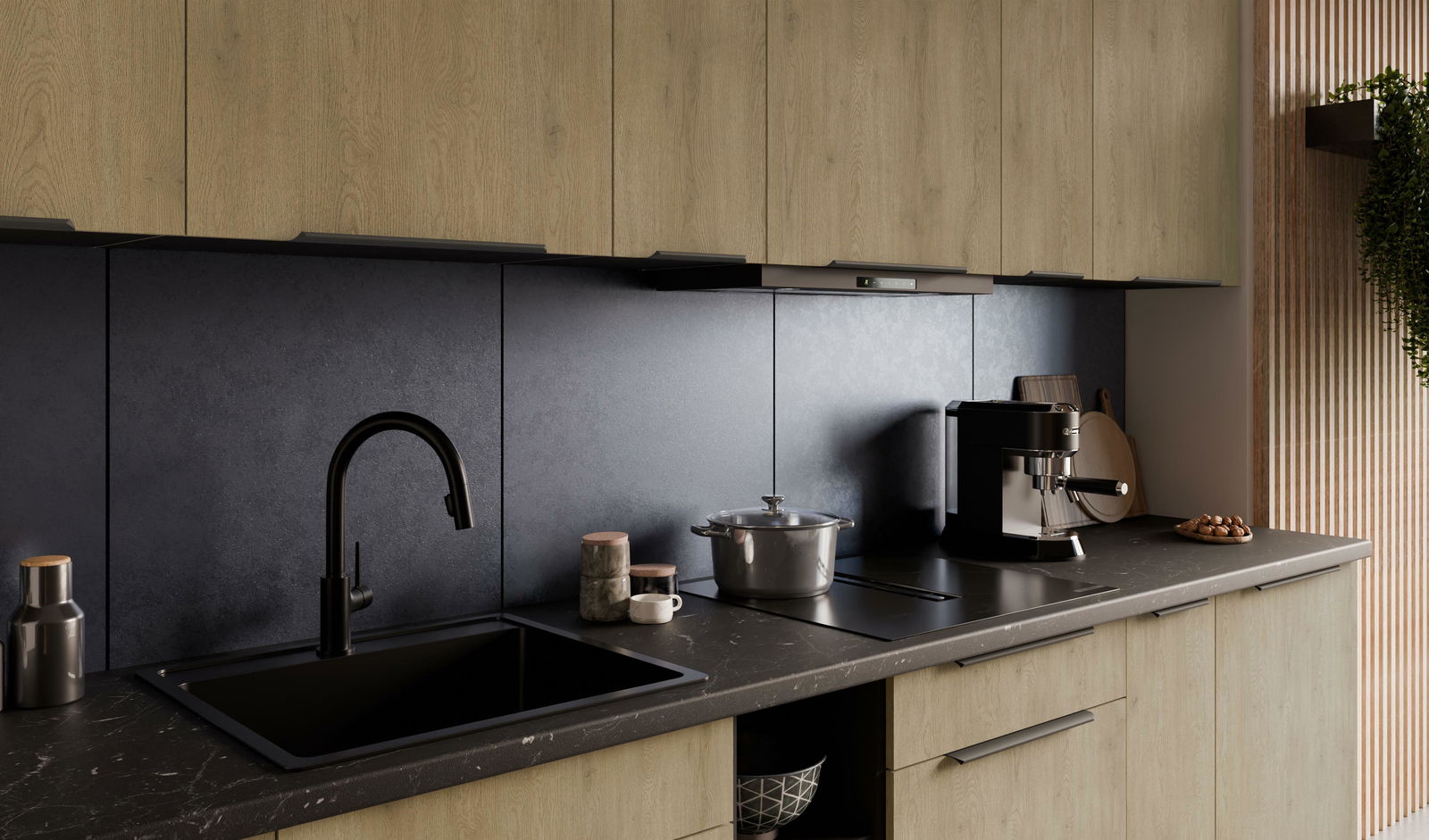 Kuchyně 300 cm Carminia 4 (dub cremona + černá)