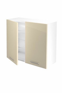 Kuchyňské linky bez horních skříněk jsou trendem. Přesto takové uspořádání kuchyně ne každému vyhovuje. Pokud nejste ochotni vzdát se klasických horních skříněk, můžete je nahradit jednoduchými policemi. Ovšem skříňky s klasickými dvoukřídlými dvířky přinášejí dostatek úložných prostor.