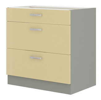 Dolní kuchyňská skříňka pod dřez Kelyn 80 ZL 2F BB (lesk krémový + šedá)