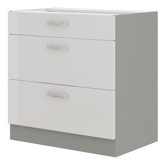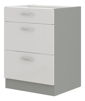 Dolní kuchyňská skříňka Lavera 60 D 3S BB (bílá + lesk šedý)