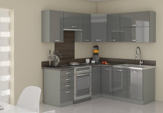 - Rohové kuchyně mohou být do tvaru L nebo tvaru U. Jsou velmi praktické, protože takové rozvržení prostoru se snáze dělí na jednotlivé části. Například prostor pro zpracování potravin, mytí nádobí a odkládací prostor pro menší spotřebiče. Součástí rohových kuchyní jsou rohové skříně, které pomohou vytěžit z velikosti místnosti maximum – využijí místo, které by jinak v celé konstrukci zapadlo.