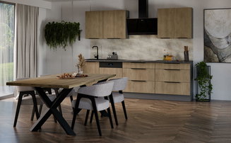 Kuchyňská linka na míru nebo hotová typizovaná sestava? Ty na míru jsou vhodné, pokud máte místnost atypického tvaru nebo prostě chcete něco originálního a podle vašich preferencí. Je však podstatně dražší než ta typizovaná. Nabídka hotových linek je široká, co se týče různých materiálů, barev a stylů, a tak nebude problém vybrat si tu nejvhodnější pro vás. Koupit můžete kompletní sestavu nebo jednotlivé části (horní a spodní skříňky) samostatně a vyskládat si z nich linku, která bude pro vaši kuchyni a jídelnu ideální.