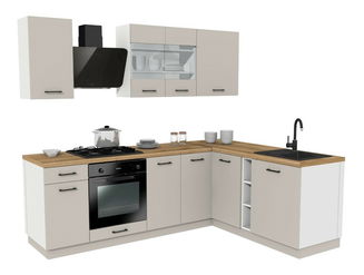 Rohová kuchyňská sestava 300 cm Ozara III (bílá + beton)