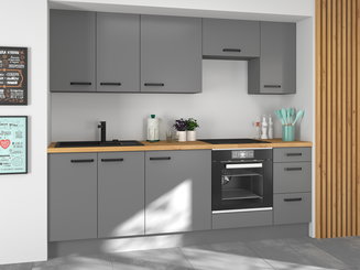 Přidejte do své domácnosti špetku luxusu s kuchyňskými linkami širokými 240 cm. Tyto impozantní kuchyňské sestavy přinášejí do vašeho domova maximální funkčnost a elegantní vzhled.