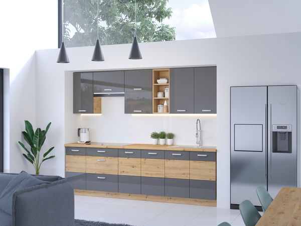 Kuchyně Arryn 260 cm (dub artisan + šedá)