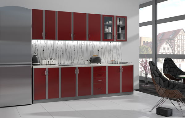 Kuchyně Elissa 260 cm (šedá platinová + bordó)