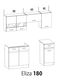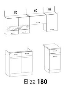 Kuchyně Estell o výšce 180 cm a hloubce 195 cm se skládá z pěti skříněk. V horní části se nachází dvoudílná vitrína o šířce 80 cm. Na pravé straně vitríny je nízká skříňka o šířce 60 cm, určená nad digestoří. Na pravém rohu je umístěna skříňka s jedněmi plnými dvířky. Na spodku na levé straně je dvoudílná skříňka určená pod dřez. Na pravé straně se nachází prostor široký 60 cm, který je určen pro Vámi vybraný model kombinovaného sporáku. Na pravo od něj je umístěna skříňka s jedněmi dvířky a jednou zásuvkou. Kuchyň je vyrobena z kvalitní dřevotřísky o tloušťce 15 mm v provedení Dub Wenge a Rijeka světla. Skříňky mají nastavitelné závěsy ŠxHxV: panty. V balení se nachází pracovní deska o tloušťce 28 mm v provedení Rijeka světla s nalepenou odolnou ABS páskou na okrajích. Spotřebiče a doplňky nejsou součástí dodávky.