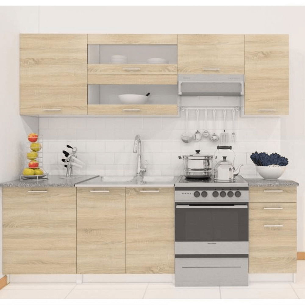 ZobrazitKuchyně Flor 240 cm bílá + dub sonoma je kompletní kuchyňská sestava, vyrobená z DTD laminovaného materiálu. Včetně dvířek dub sonoma a bílých korpusů. Horní skříňky s digestořovou skříňkou mají šířku 240 cm, dolní skříňky mají šířku 180 cm. Pracovní deska má tloušťku 28 mm a úchyt je plastový. Kuchyň je dodávána v demontu a obsahuje základní skříňky s pracovní deskou a dřezovou skříňkou. Existuje také možnost dokoupení univerzálního L/P dřezu LAY ON. Tato kuchyně je ideální volbou pro ty, kteří hledají praktické a moderní řešení pro svůj domov.