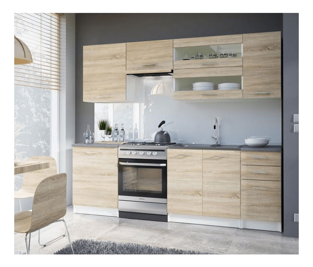 Kuchyně Flor 240 cm bílá + dub sonoma