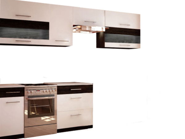Elegantní moderní kuchyně čistých tvarů ve výborném barevném provedení vhodná do moderních bytů. Korpus je v tmavém odstínu wenge a dvířka v odstínu wenge bílé. Šedé tenké vodorovné ručky.