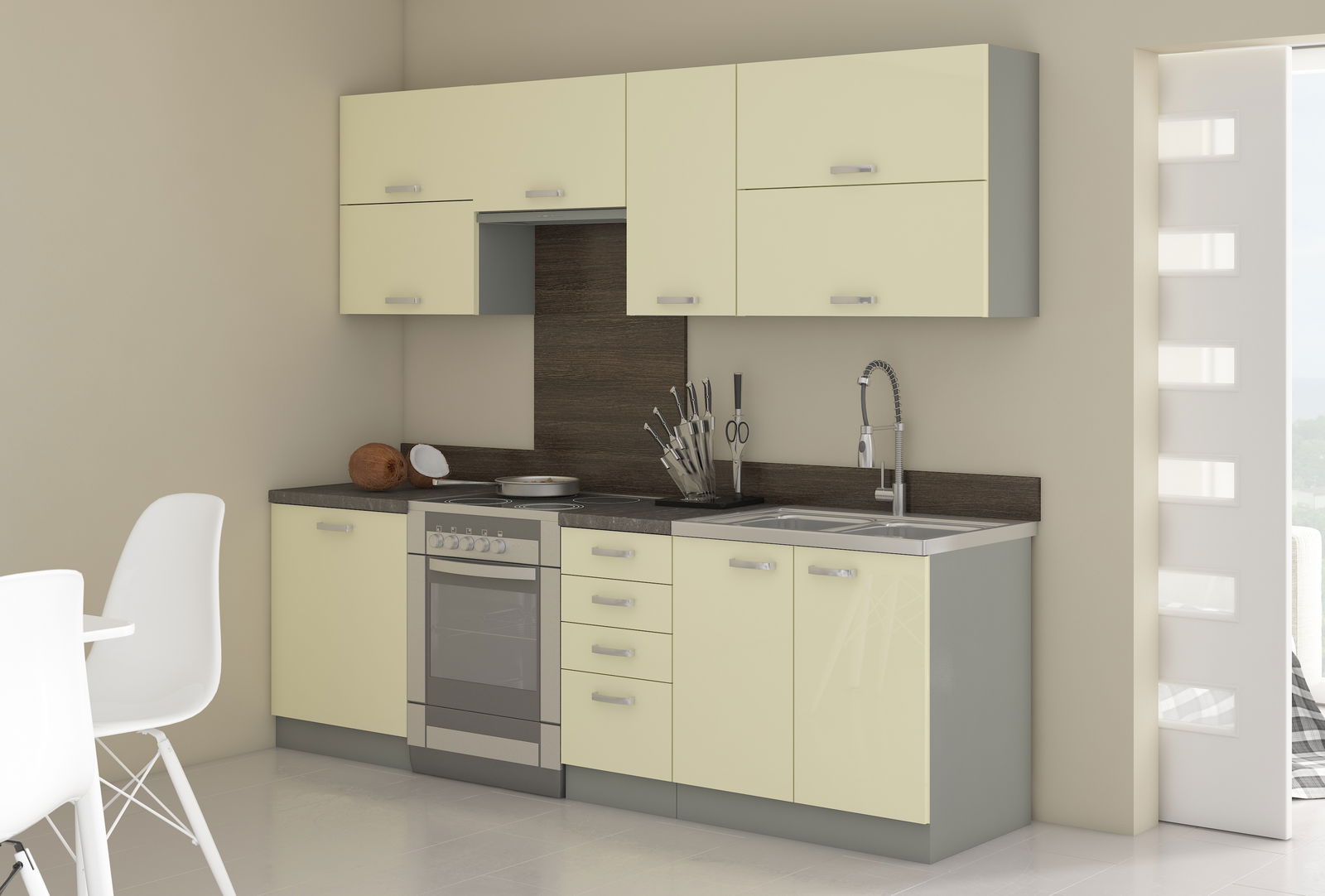 Kuchyně Kelyn 2 260 cm (šedá+ lesk krémový)