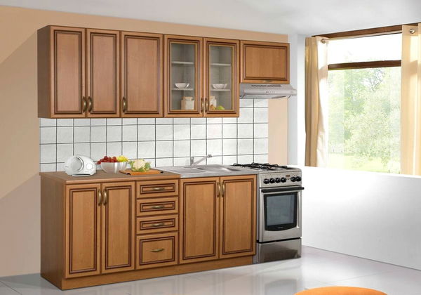 Jednotlivé díly jsou navrženy tak, aby se daly poskládat v libovolném pořadí. To umožňuje složení si kuchyně podle Vašich potřeb a představ. Barevné provedení jednotlivých částí: • dvířka a zásuvky: olše • pracovní deska: bez Mariposa • lišty: patina • úchyty: kovové Celkové rozměry kuchyně jsou 240x180 cm, přičemž výška horních skříněk je 72 cm, hloubka horních 31 cm, hloubka spodních skříněk 60 cm a výška pracovní desky 28 mm.