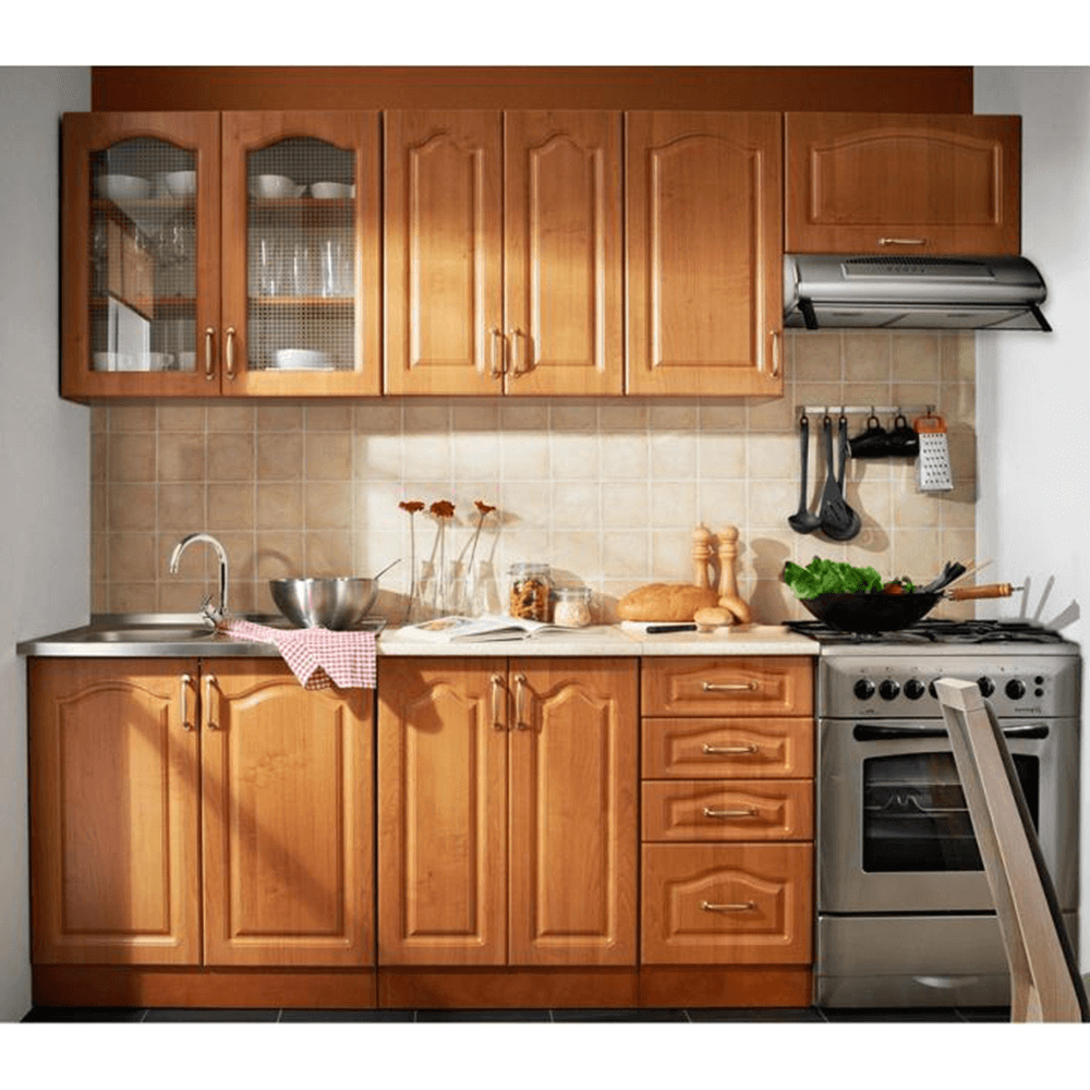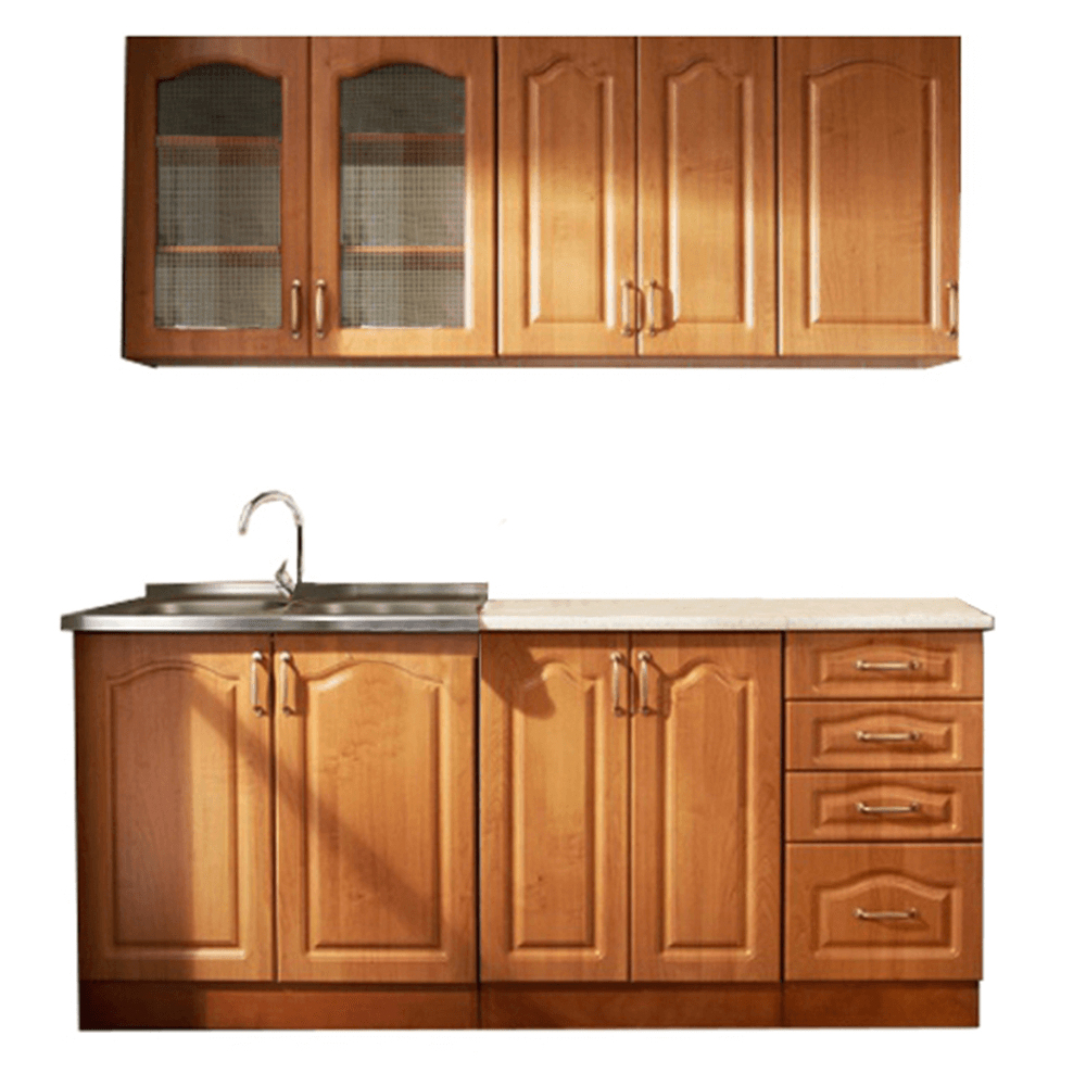 Tato kuchyně Leite MDF klasik v provedení olše je ideální volbou pro ty, kteří hledají funkční a zároveň krásnou kuchyni. Svým designem vytváří příjemnou atmosféru, ve které se budete cítit vždy příjemně. Korpus kuchyně je vyroben z DTD laminované, dvířka jsou z materiálu MDF, sklo horních skříněk je čiré. Kuchyňská sestava s digestořovou skříňkou má šířku 2,4m, spodní skříňky mají šířku 1,8m. Kuchyně se dodává bez pracovní desky a spotřebičů, avšak doporučujeme dokoupit univerzální dřez v našem eshopu. Úchyty jsou ozdobného typu a jsou hnědé barvy. Materiál je DTD laminovaná + MDF foliovaná o tloušťce 16 mm. Tato kuchyně má horní část o rozměrech 240 x 71,5 cm a dolní část o rozměrech 180 x 82 cm. S touto kuchyní získáte funkční a krásný kousek nábytku, který vám poskytne příjemné a útulné prostředí pro vaše každodenní aktivity v kuchyni.