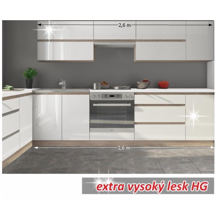 Kuchyně Lilouse 260 cm dub sonoma + lesk extra vysoký bílý *výprodej
