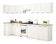 Ozara 33 působí, jako by byla navržena pro ty, kteří nacházejí krásu v čistotě a pořádku. Její celobílá silueta nepůsobí sterilně, ale jako klidná základna, kde se rodí kreativita bez rozptýlení. V této kuchyni vynikne každý detail – barevný talíř, mísa s ovocem či jednoduchý hrnek, protože prostor sám zůstává ticho v pozadí. Nenucená elegance, promyšlené řešení úložného prostoru a čistý vizuální styl dělají z Ozary 33 volbu pro ty, kteří v kuchyni nehledají jen místo pro přípravu jídla, ale také atmosféru, ve které se dobře žije.