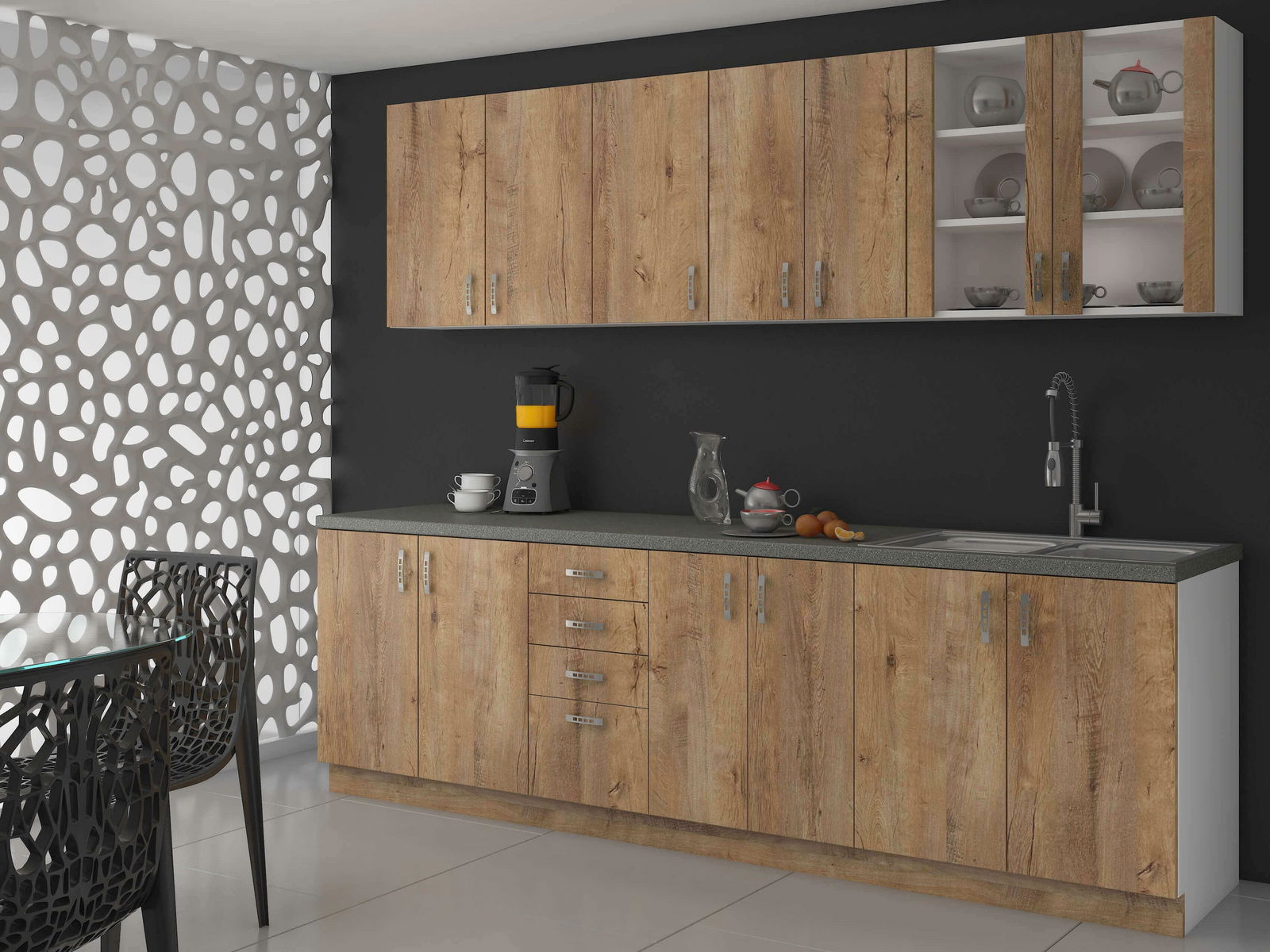 Kuchyně Sylrona 85 v kombinaci dub lefkas a bílá je ideálním řešením pro ty, kteří hledají moderní a praktický nábytek do své domácnosti. Její světlé barevné provedení opticky zvětšuje prostor a dodává interiéru svěžest. Vyrobená z kvalitní laminované dřevotřísky s melaminovými okraji, tato kuchyňská sestava zaručuje dlouhou životnost a odolnost vůči každodennímu opotřebení. Univerzální dvířka umožňují montáž na pravou i levou stranu, což zvyšuje flexibilitu při instalaci. Kuchyně Sylrona 85 je ideální volbou pro ty, kteří hledají stylové a funkční řešení pro svůj domov. Její moderní design a kvalitní materiály z ní dělají investici, která se vyplatí.