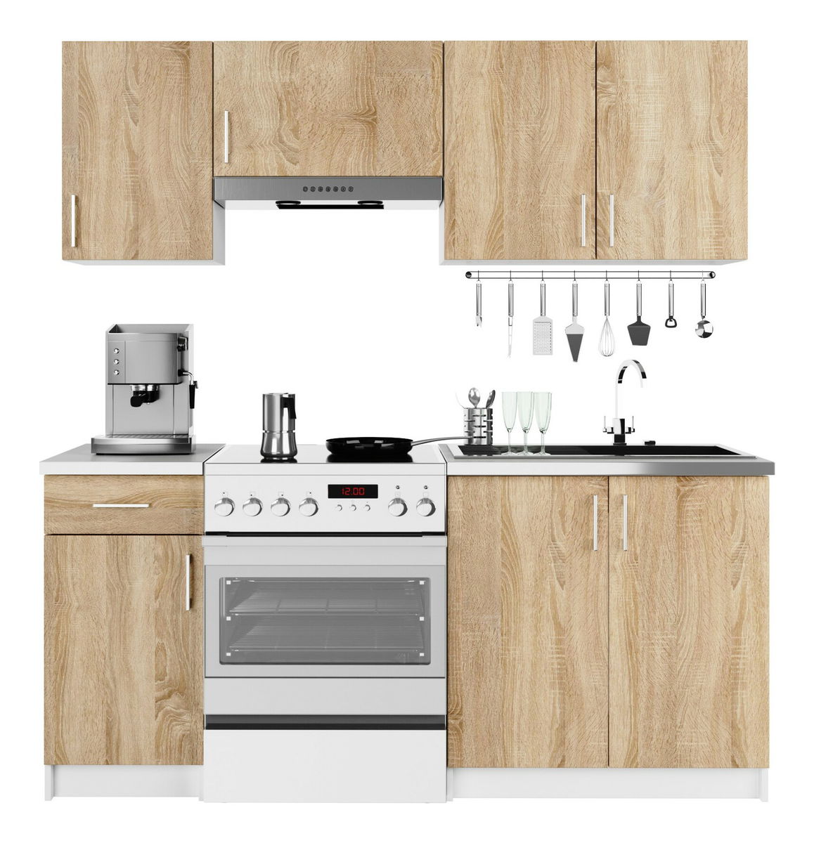 Kuchyňská sestava 180 cm Lula TYP1 ŠxHxV: bílá + dub sonoma je vyrobena z kvalitních materiálů a nabízí praktické řešení pro vaši kuchyni. S výškou 203 cm, šířkou 180 cm a hloubkou 44,5 cm, tato sestava poskytuje dost místa pro skladování potravin, nádobí a kuchyňských potřeb. Je vybavena bílou a dubovou sonoma barvou, která dodává elegantní a současný vzhled. Kuchyňská sestava obsahuje několik skříněk a zásuvek, což umožňuje organizaci vaší kuchyně a udržování věcí na dosah ruky. Nechybí ani dostatek prostoru pro umístění elektrických spotřebičů. Tato sestava je ideální pro ty, kteří hledají moderní a funkční design pro svoji kuchyni.