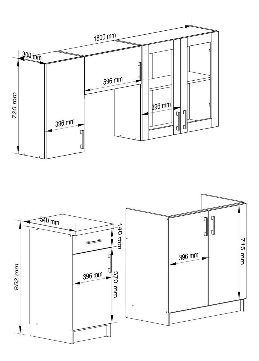 Kuchyňská sestava 180 cm Lula TYP1 C (bílá + dub sonoma)