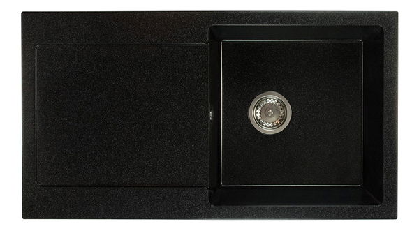 Jednokomorový kuchyňský dřez Adaxa (černá + textura) (se 2 otvory pro baterii) (L) s odkapávačem je ideální volbou pro ty, kteří preferují trvanlivost a snadnou údržbu. Vyrobený z granitu, tento dřez je mimořádně odolný vůči mechanickému poškození, teplotním rozdílům a poškrábání. Jeho povrch je protiplísňový a snadno se čistí, zároveň odolává skvrnám a zachovává svoji barvu. S tímto dřezem je práce v kuchyni pohodlná a bezstarostná.