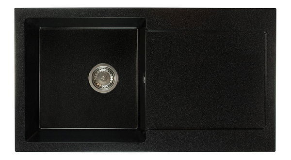 Kuchyňský dřez Adaxa (černá + textura) (se 2 otvory pro baterii) (P) o rozměrech 19 cm výška, 90 cm šířka a 43 cm hloubka je ideální volbou pro vaši kuchyň. Tento jednokomorový dřez je vyroben z granitu, což mu dodává vysokou odolnost vůči mechanickému poškození, teplotním rozdílům a poškrábání. S protiplísňovým povrchem a jednoduchým čištěním se dřez Adaxa vyznačuje také odolností vůči skvrnám a změně barvy. Díky těmto vlastnostem je používání tohoto dřezu pohodlné a snadné. Udělejte si radostnou investici do kvalitního kuchyňského dřezu, který vám bude sloužit dlouhá léta.