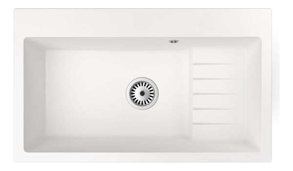 Jednokomorový kuchyňský dřez Akream (bílá) (se 3 otvory pro baterii) s odkapávačem. Vynikající volba pro náročné zákazníky. Unikátní design s moderním sníženým odkapávačem. Vyrobený z granitu, odolný vůči tepelným šokům, nárazům a poškrábání. Ideální pro každodenní používání v kuchyni. Protiplísňový povrch pro snadnou údržbu. Specializované ochranné prostředky na dřezy vám pomohou s údržbou. Odolný vůči skvrnám a změně barvy. Snadno se čistí.