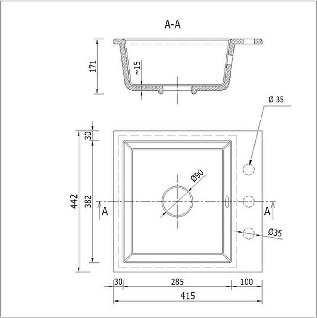 Dřez je dodáván s manuálním nástěnným sifonem. Ve dřezu se nenachází otvor pro baterii.