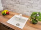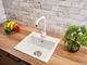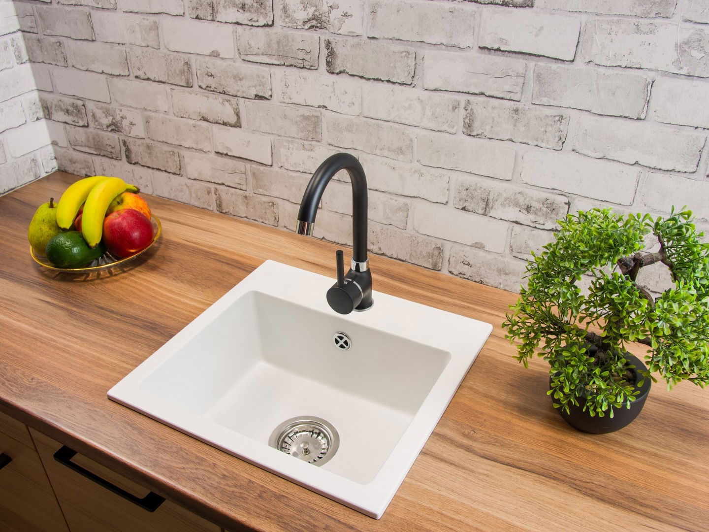 Jednokomorový kuchyňský dřez Donius (bílá) (se 3 otvory pro baterii) o výšce 17,1 cm, šířce 44,2 cm a hloubce 41,5 cm je ideální volbou pro každého, kdo oceňuje vysokou kvalitu, odolnost a moderní design. Vyrobený ze směsi granitu a granitového pojiva v poměru 80% k 20%, tento dřez je mimořádně odolný vůči mechanickému poškození, teplotním rozdílům a poškrábání. Jeho moderní forma a jednoduchý design osloví každého, kdo oceňuje estetiku a eleganci. Bez ohledu na styl a uspořádání kuchyně, tento dřez se hodí do každého prostředí. S protiplísňovým povrchem, brání růstu bakterií a plísní a snadno se udržuje v čistotě, což usnadňuje jeho každodenní používání.