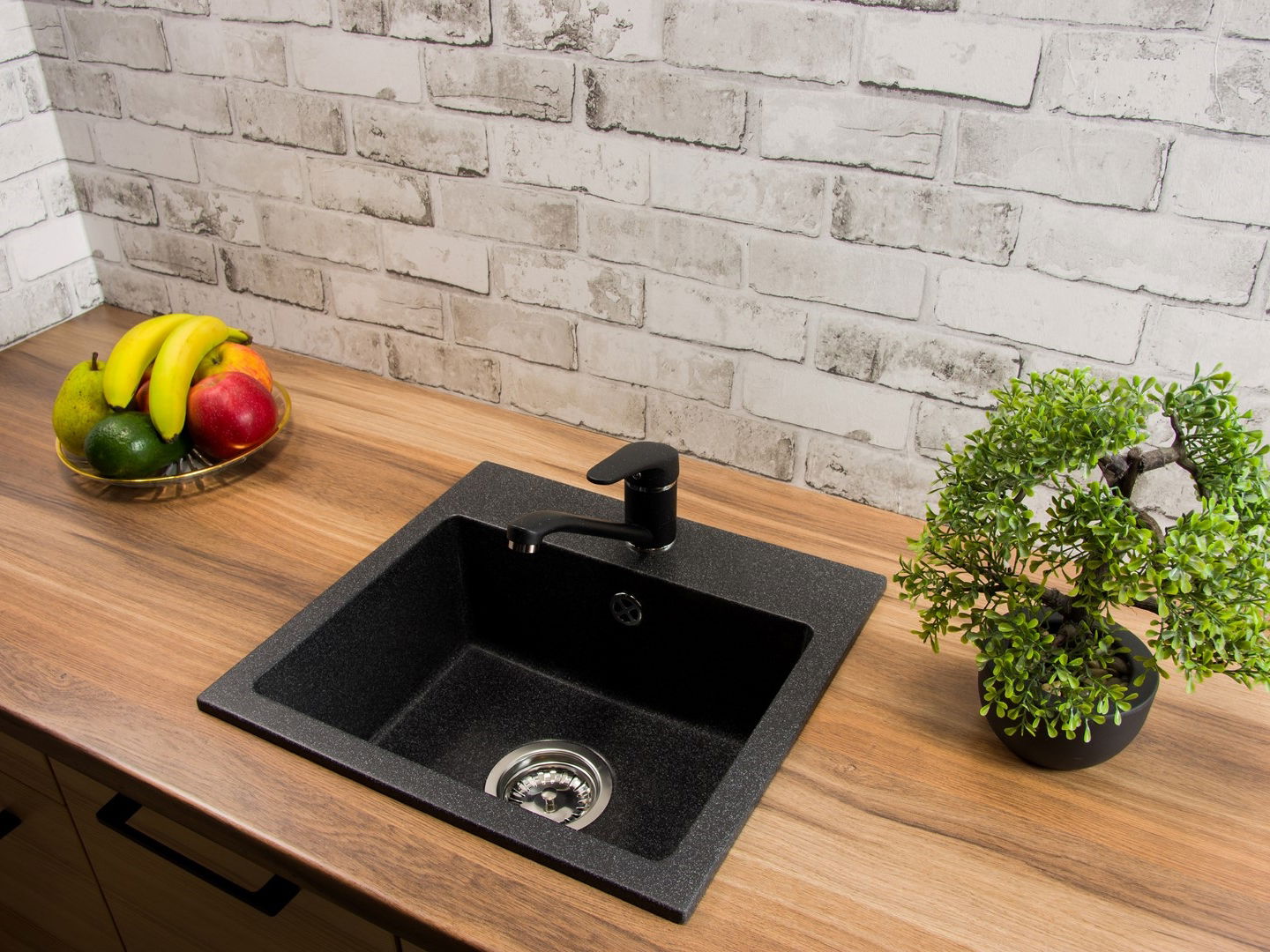 Kuchyňský dřez Donius (černá + textura) (s 1 otvorem pro baterii)