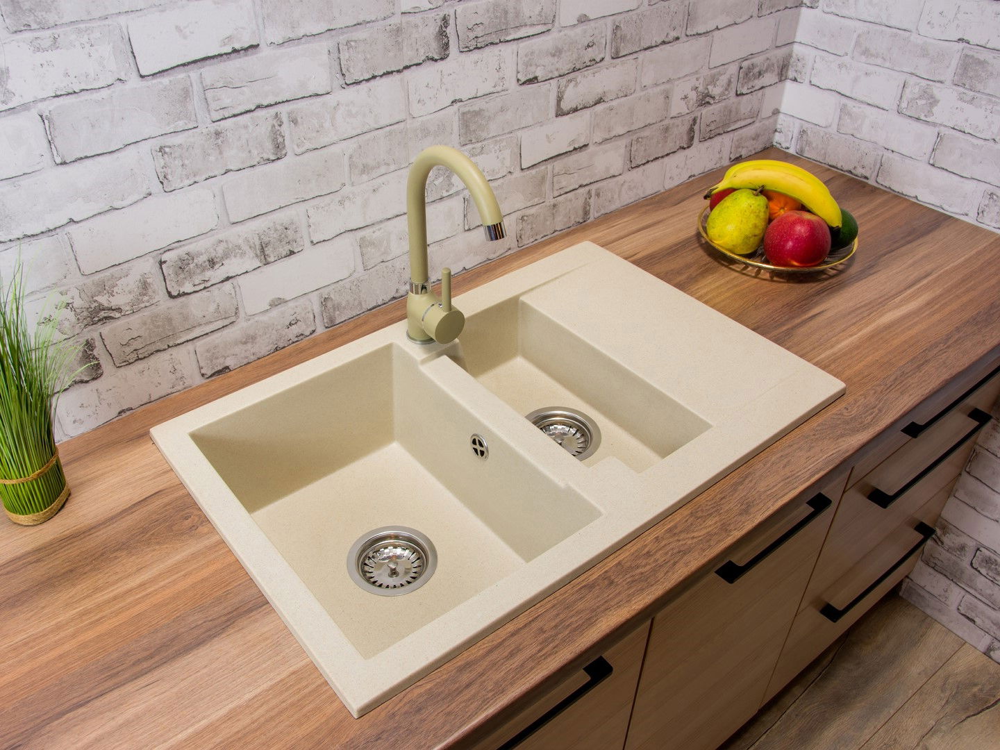 Kuchyňský dřez Dortuna (béžová) (bez otvoru pro baterii) (P)