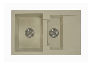 Granitové dřezy jsou vyrobeny ze speciální směsi granitu a granitového pojiva v poměru 80% ke 20%, což zaručuje vysokou odolnost vůči mechanickému poškození, teplotním rozdílům a poškrábání. Dřez je odolný vůči teplotám do 280 °C, což znamená, že na něj lze bezpečně umístit horké nádobí a také jedlý olej nepřesahující teplotu 180 °C.
