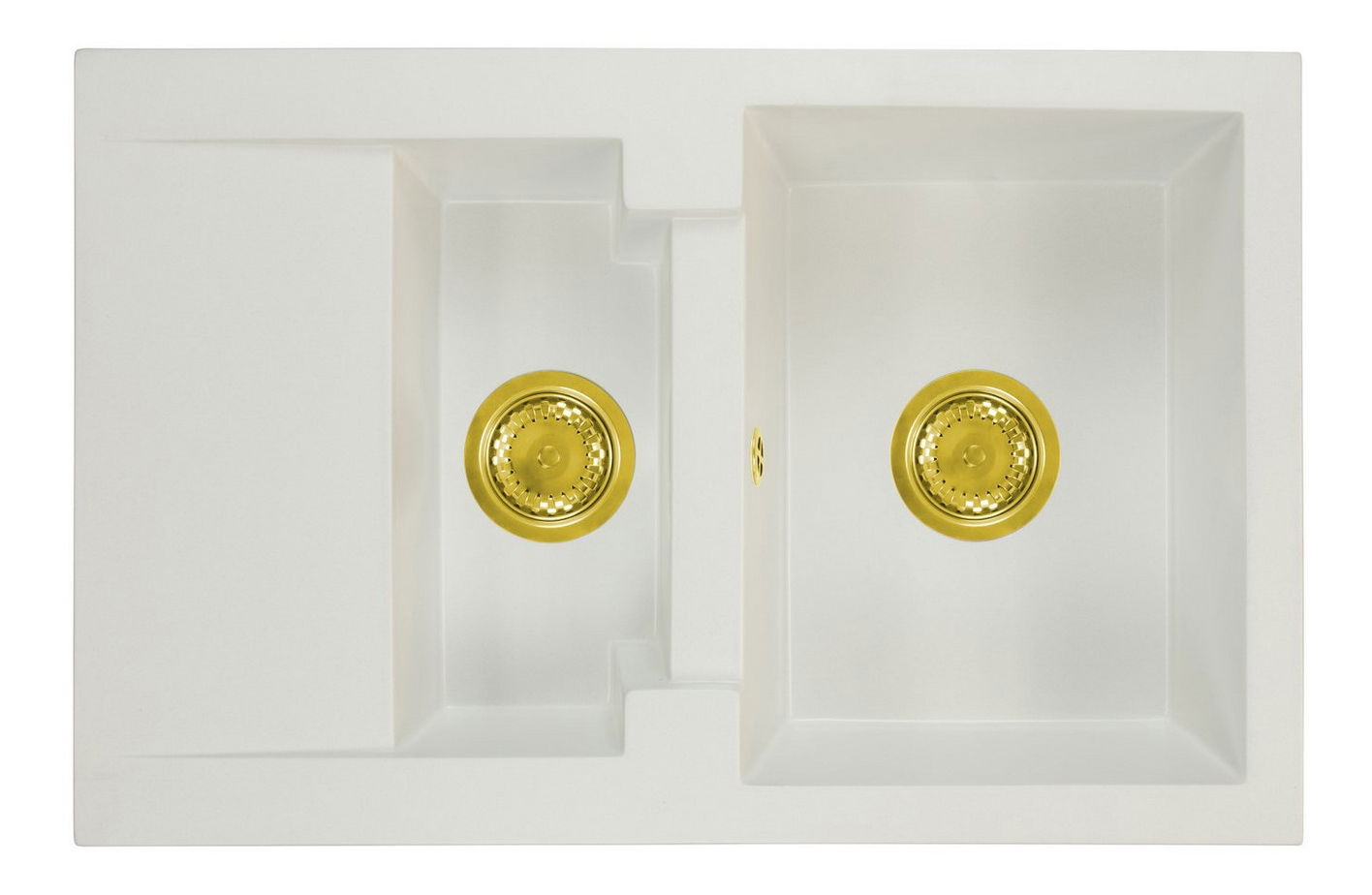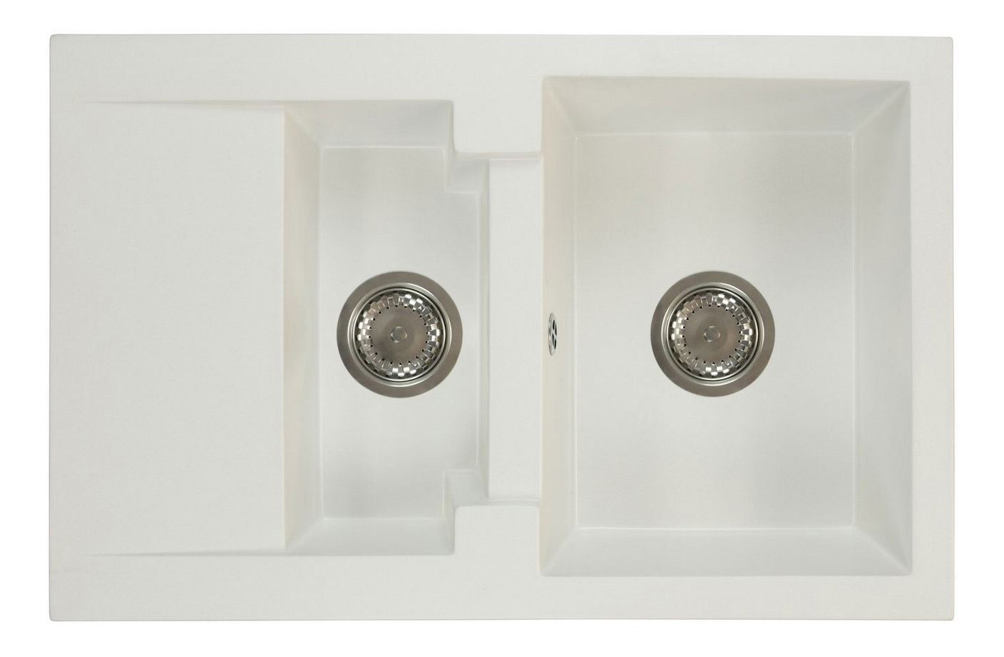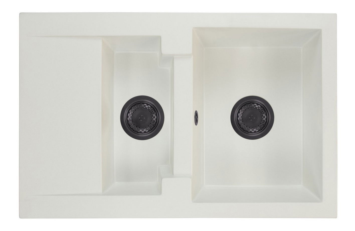 Kuchyňský dřez Dortuna (bílá) s 1 otvorem pro baterii má výšku 17,7 cm, šířku 73,7 cm a hloubku 47,5 cm. Tento jedenapůlkomorový kuchyňský dřez s odkapávačem je vyroben z granitu a je ideální pro i ty nejnáročnější zákazníky. Je odolný vůči tepelným šokům, nárazům a poškrábání, což z něj činí skvělou volbu pro každodenní použití v kuchyni. Jeho povrch je protiplísňový a snadno se udržuje v čistotě. Navíc, tento dřez je odolný vůči skvrnám a nezmění barvu.