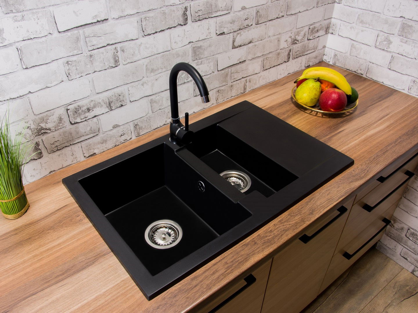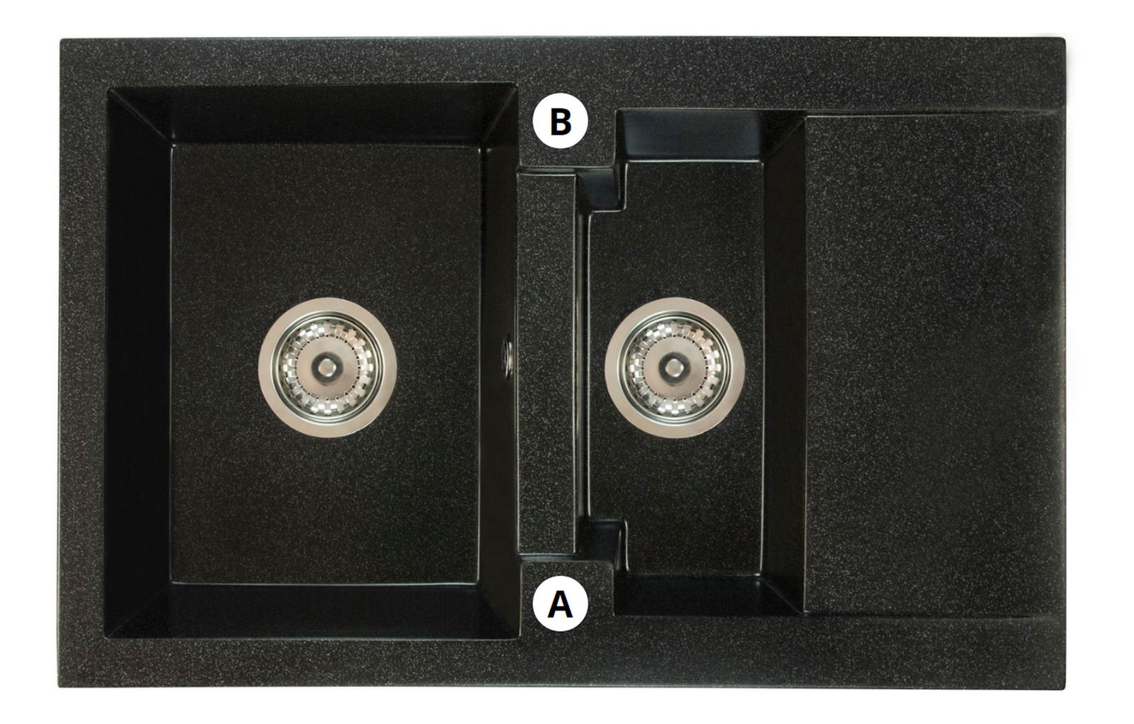 Kuchyňský dřez Dortuna (černá) (se 2 otvory pro baterii) (P)
